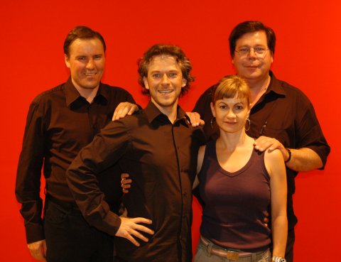 Joseph Heinzle (Musikalische Leitung), Patrick Biagioli (Regie), Barbara Rodriguez-Frick (Choreografie) und Hans Nigg (LMC Präsident) |